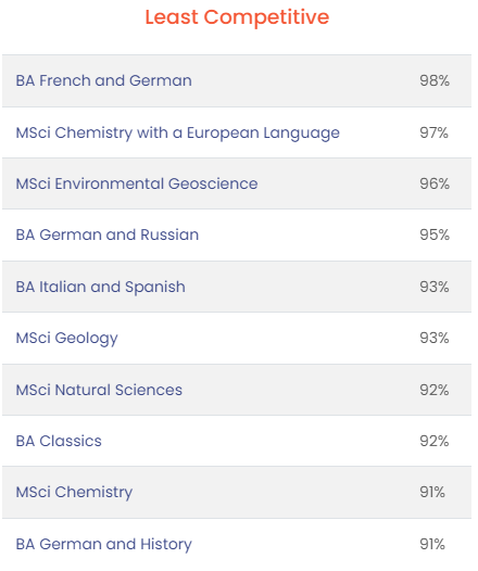 剑桥大学本科课程竞争最小、录取率最高的专业有:
