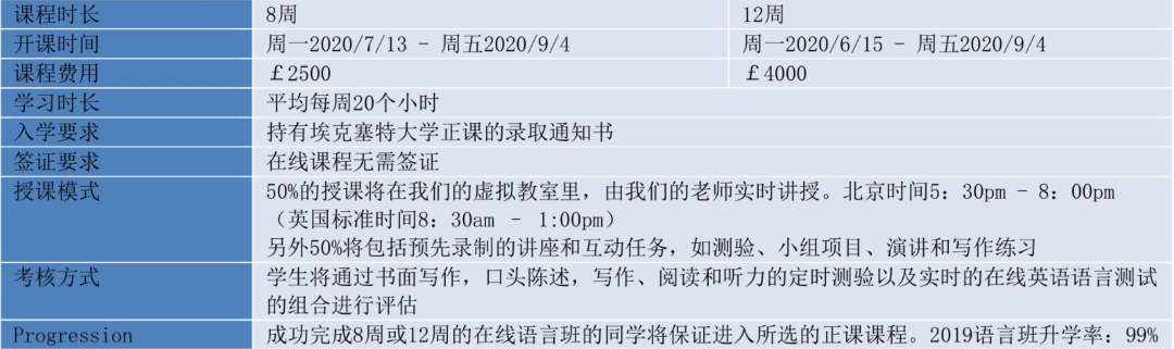 由于全球冠状病毒(COVID-19)的爆发,威敏大学对2020年夏季的pre-sessional课程做了一些改变,将不再执行正常的15周、12周和7周的语言班课程,只开设为期10周的在线pre-sessional课程。语言班课程开设信息如下, 并且接受多邻国配语言班。